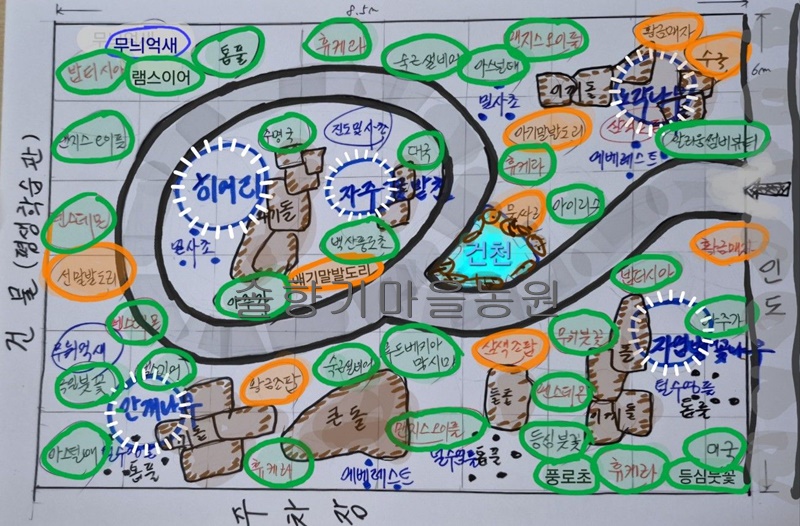 도안에 맞게 식재나 배치를 하고 난다음 작은