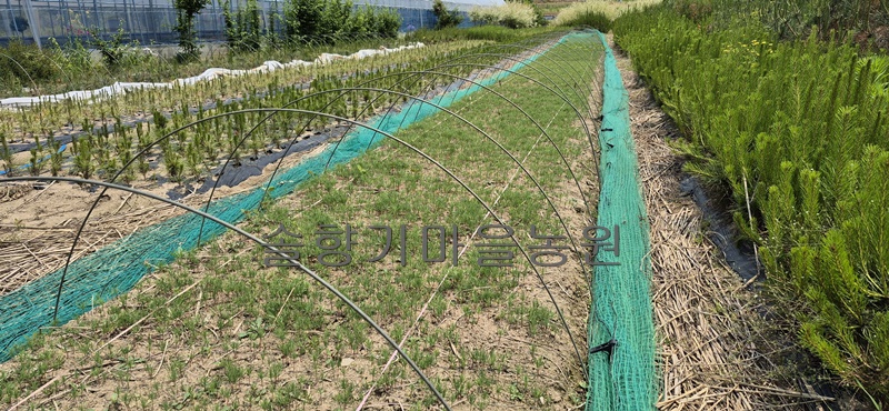 금년도 파종한 소나무 묘목을 지난 7월에